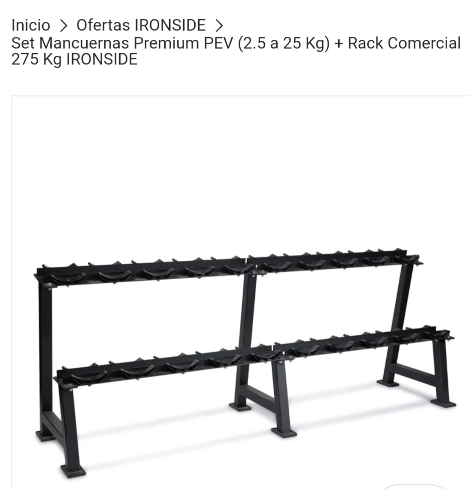 Set Mancuernas Premium PEV (2.5 a 25 Kg) + Rack Comercial 275 Kg IR...